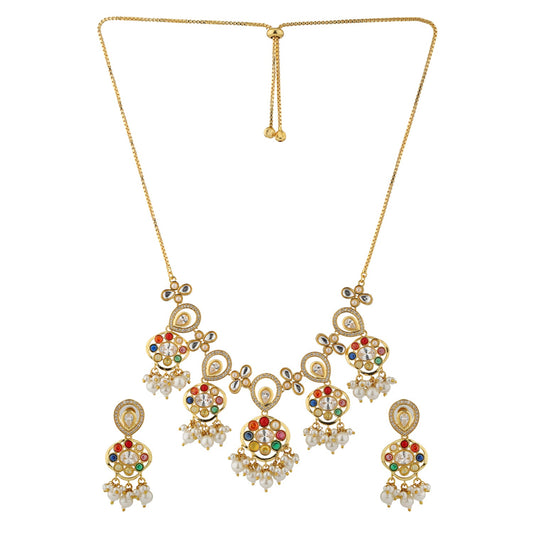 Navratan Fluid Elegance Short Necklace Set