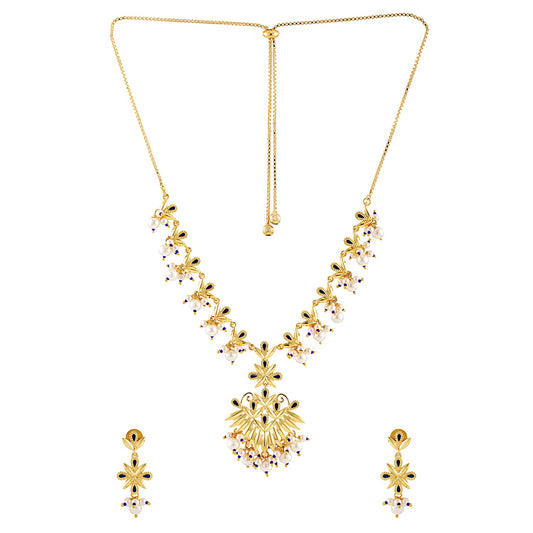 Japanese Silver Plated Hand Crafted Enchanting CZ Studded Necklace Set